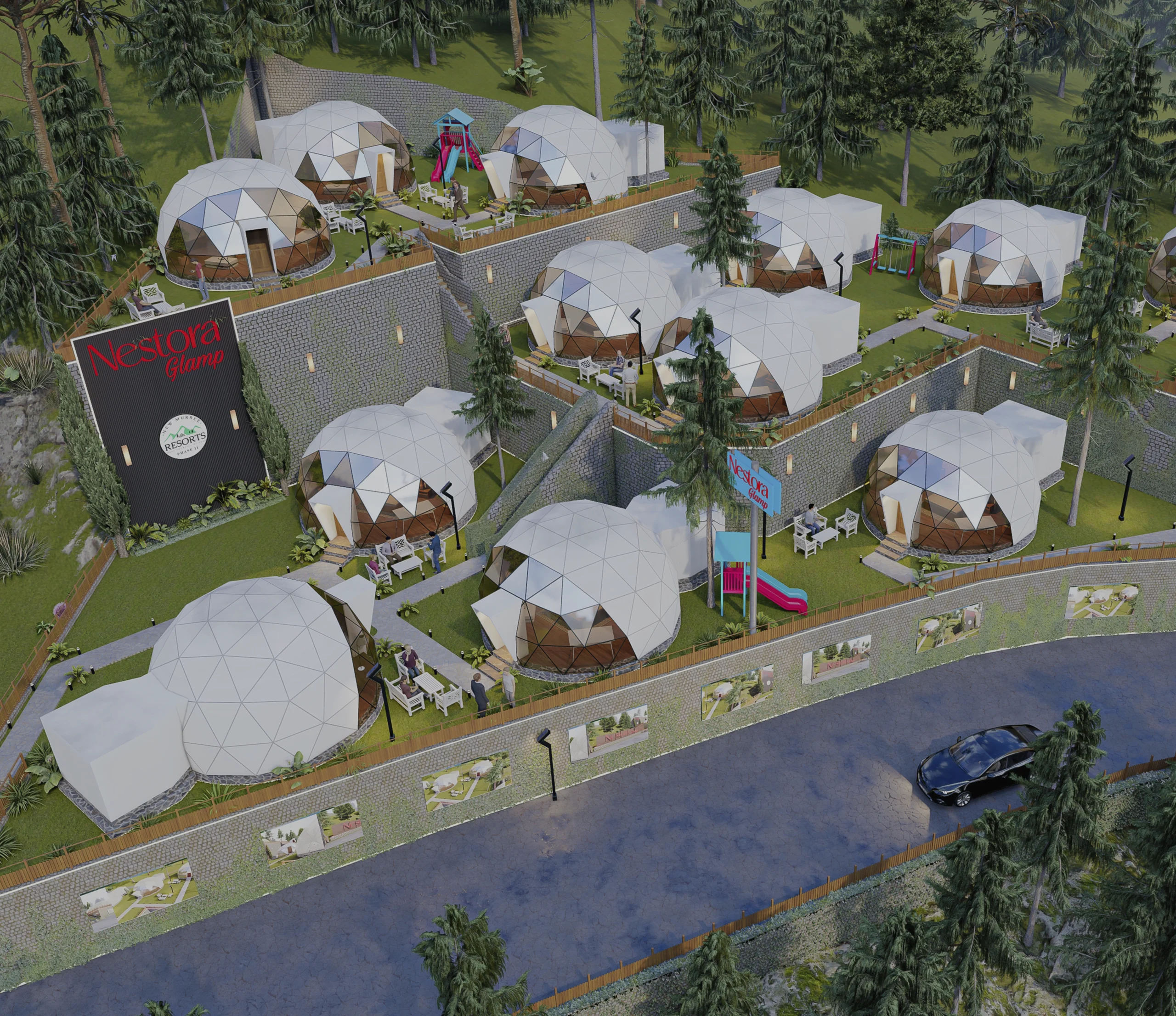 Nestora Glamps brings 2.5-Marla domes to New Murree that have designer stays with a managed, service-based model. Around 50% land stays open/green, so the setting feels natural. Nestora Glamps Chapter 2 is a residential plus revenue based model which caters living use as well as rental income generation.